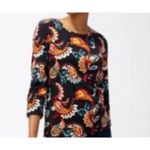 The Chico's Floral Print Pullover Blouse in size small is a versatile and stylish addition to any woman's wardrobe. Made from a lightweight and breathable cotton blend fabric, this blouse features a crew neck and long sleeves, making it perfect for all seasons. The multicolor floral print adds a touch of outdoor and modern style, suitable for a variety of occasions from casual outings to formal events. Machine washable and with a regular fit, this blouse from Chico's is a classic choice for the fashion-forward woman.