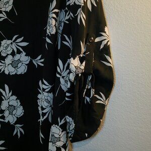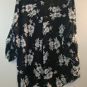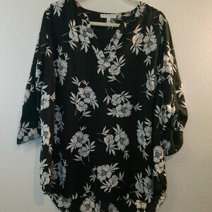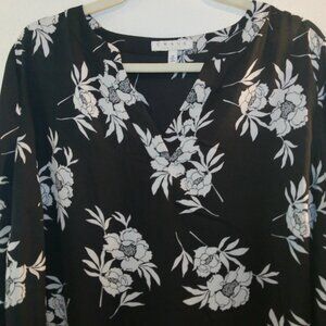 Floral Print Blouse Chaus Black White 3/4 Sleeve Size 1X