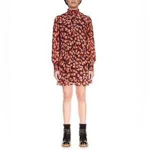 Floral Print Blouson Mock Neck Long Sleeve Mini Dress