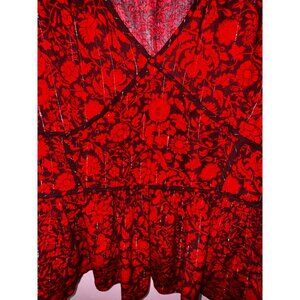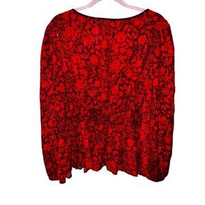 Floral Print Boho Blouse Plus Size XXL Red Black Western Boho Sexy Peplum Top