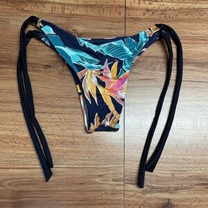 Bikini bottom with side tie. Also has ruched back which helps create a bubble-butt illusion, enhancing your bootie’s curves. Bikini bottom is lined in the front and back.