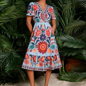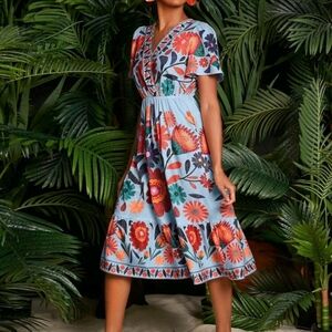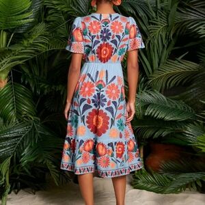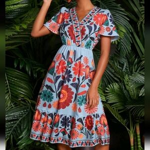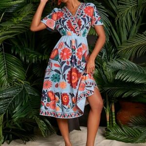 Floral Print Butterfly Sleeve Ruffle Hem Women Dress,Fall Women Dresse