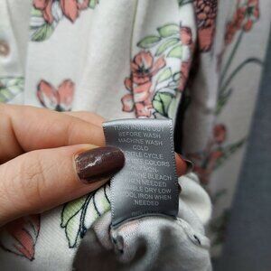 Floral Print Button-Down Cardigan By Marled M Rayon/Nylon Pink & White