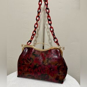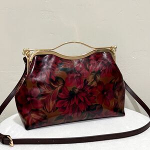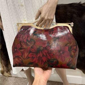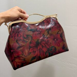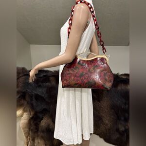 Floral Print Cowhide Leather Handmade Double Kisslock Top Handle Bag/Crossbody