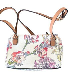 This crossbody bag combines a floral design with functionality. The adjustable strap ensures comfort while the gold-tone clasp adds a touch of elegance.
