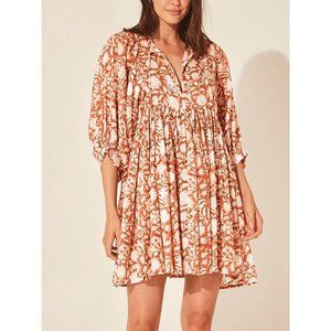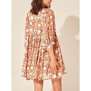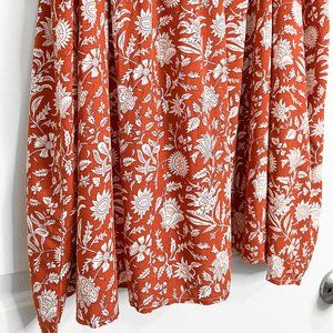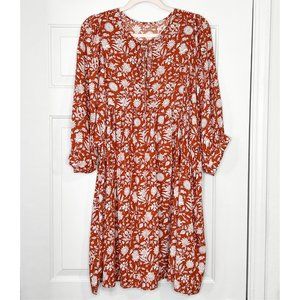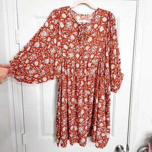 Floral Print Dolman Sleeves Pleated Dress - Rust