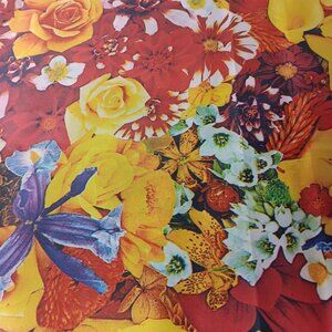 Floral Print Fabric Colorful Bright Red Yellow Purple Woven Non Stretch 3 Yards