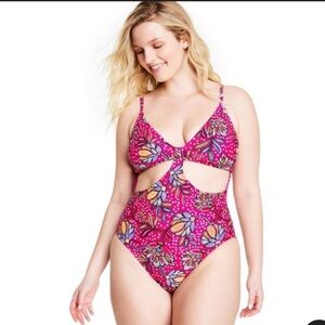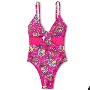 Floral Print Front Cutout One Piece Swimsuit - Tabitha Brown for Target Pink, Floral print one-piece swimsuit