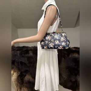 Only one available. Chic design, great quality & multi use style purse. Handmade from premium genuine leather with beautiful flowers print. Exquisite push-lock metal frame design. This purse holds a lot, spacious enough for your phones, wallet, cosmetics, compact umbrella & other items that you may need. Includes1 straps and 1 chain, use in multiple ways, wear as a clutch, underarm bag , shoulder bag or crossbody.