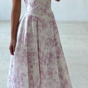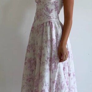 Floral print midi dress with adjustable spaghetti straps and underwire detail. Fully lined.