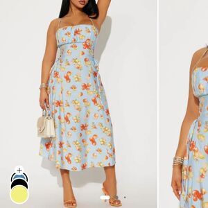 Elevate your wardrobe with this stunning floral print midi skirt. Featuring a vibrant blue base adorned with colorful floral patterns, this skirt is perfect for any occasion. Pair it with your favorite top for a chic look. Jackie Lace Up midi dress.