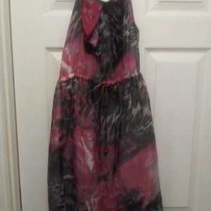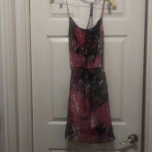 Chiffon floral and animal print short sundress. Has yoke/halter back.