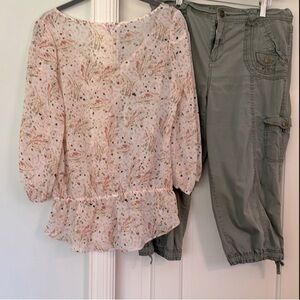 Floral Print Peach Green Women's Blouse Long Sleeve Cinch Waist Medium Candie’s