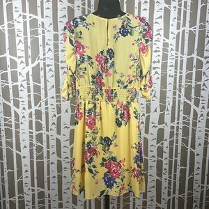 Additional Details: Great floral print, shirred/smocked puff sleeves, elasticized smocked waistband, single button keyhole closure at back of neckline, lined from waistline down, unlined through top.