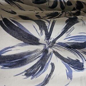 Stylish ragland sleeve top with a floral print. Features a mix of blue and white colors. Size 4. made in Italy. no makers tags.