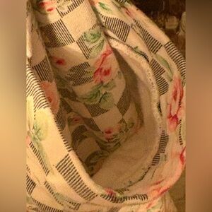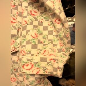 Charming floral robe with a soft, cozy feel. Ideal for relaxing at home. Features a delicate pink and white pattern.