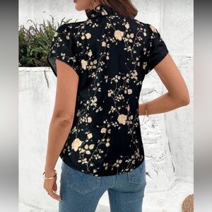 Floral Print Ruffle Neck Blouse