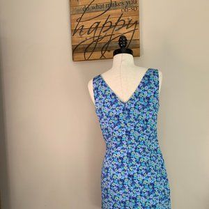 Floral Print Sleeveless Knee Length Dress High Neck Pencil Shift Sheath Size 5/6