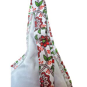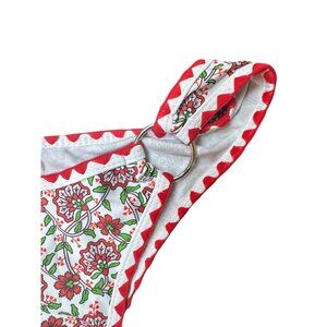 • Floral-printed fabric with red accents