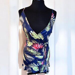 This Floral Print Women Short V Neck Mini Dress is a classic piece crafted from sumptuous Polyester, elegantly draping above the knee. The V-neckline adds sophistication to its Navy Blue hue, creating the perfect choice for a stylish, sophisticated look.
