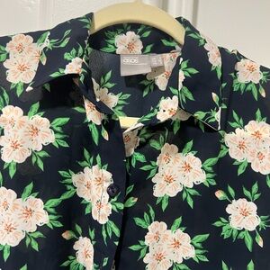 Us size 4 , women’s size small long sleeve collared blouse in black green and pink floral design with buttons. Worn a few times. From ASOS