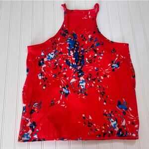 Floral Print Wrap Cami Tank Top with Adjustable Straps Red Blue - Size Medium