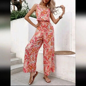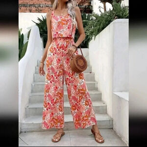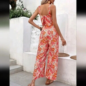 Floral Print Zip Back Wide Leg Cami Jumpsuit