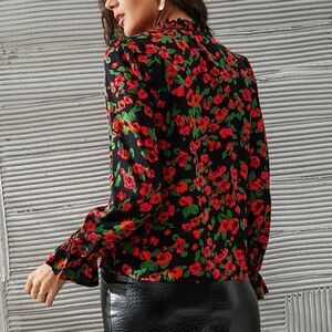 Shein Floral Print Flounce Sleeve Frilled Tie Neck Top size XS. Brand new in package, never worn and no flaws. Cute keyhole tie front neck with ruffle details on collar and sleeves. No stretch.