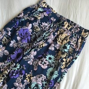 Floral printed pants with elastic waist by Motel. Gently worn only once. Made with a woven material. Measures 25" relaxed all around the waist, and measures 39 1/2" in length.