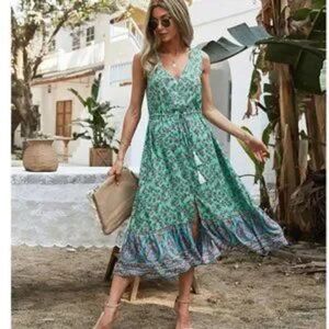 Beautiful Floral Printed Midi Button Down Dress Size Small