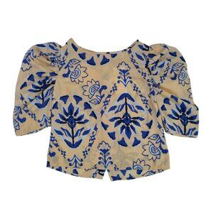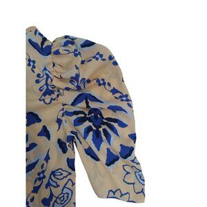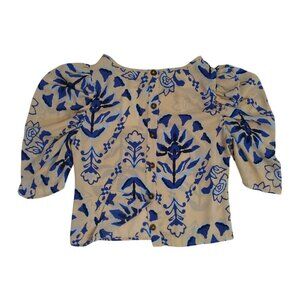 Floral Puff Sleeve Blouse By Sienna Sky Beige & Blue Button-Up Womens M. NWT