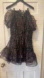 Chic black dress with pink floral pattern and puff sleeves. Features a ruffled hem for added style.