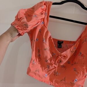 Elevate your style with this chic coral puff sleeve top. Featuring a delicate floral pattern, it's perfect for any occasion.