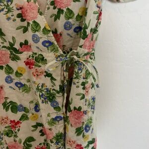 Floral Puff-Sleeve Mini Floral Cottage Peasant Picnic Summer Flower Wrap Dress