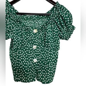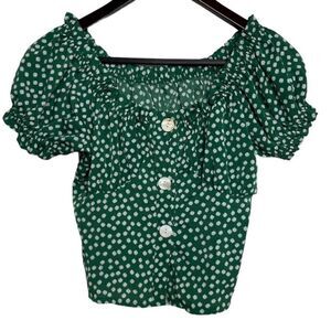 Floral Puffy Sleeve Button Down Crop Top Green and White Size Small