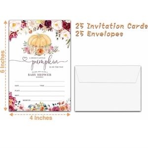 Charming baby shower invitations featuring a pumpkin and floral design. Perfect for a sweet celebration.