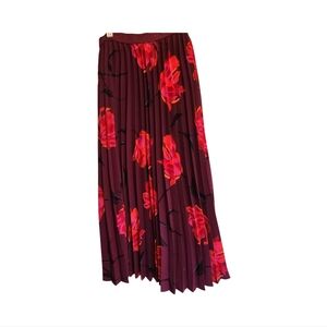 Elegant purple pleated skirt with a vibrant floral pattern. Perfect for any occasion. Very light weight. Easy to wear with elastic pull on design. in very good condition. Size xs. Waist 12.25", length is 33".
