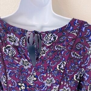 Floral Purple Puff Sleeve Tiered Dress Size M