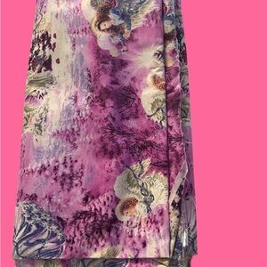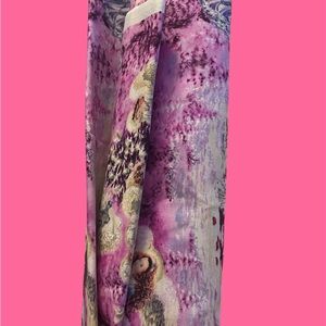 Elegant fabric with an angelic design. Features shades of purple and cream.