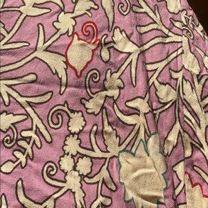Stylish floral skirt in purple and white. Features a vibrant pattern side gather and slit.