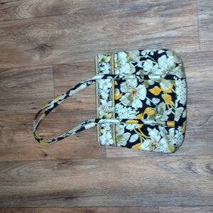 This stylish floral quilted tote bag features a vibrant yellow and black design. Perfect for adding a pop of color to any outfit.