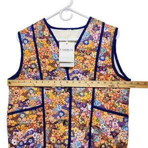 Floral Quilted Womens Vest With Button Closure & Pockets Size S