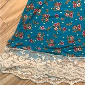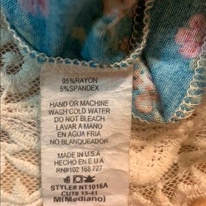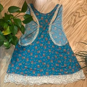 Super soft, blue racer back tank with flower design and elegant scalloped lace detail. Happy to provide measurements upon request.