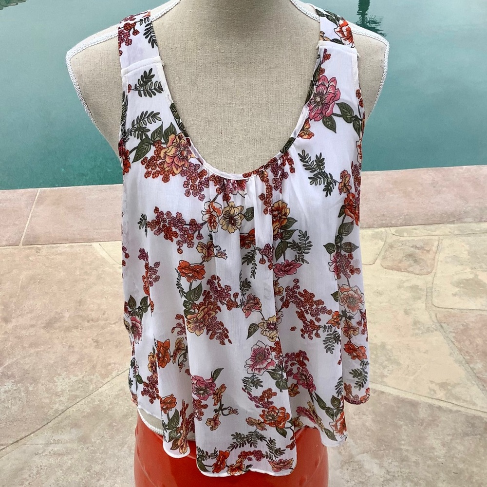 Very pretty lightweight Racerback Flowing Chiffon Tank with built in undershirt. Previously owned with gentle use... In very good condition.