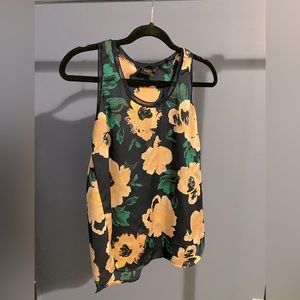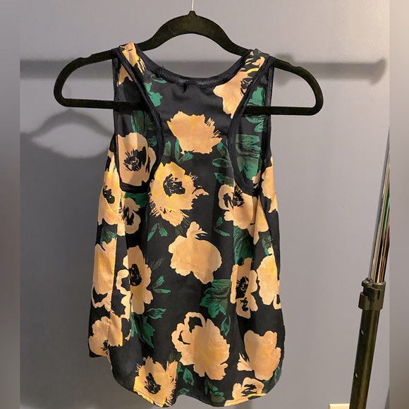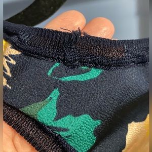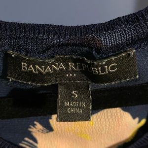 Banana Republic - Small - Navy with pale pink and yellow floral pattern. 100% Polyester. Excellent used condition. Seam of trim on back of neck has slight flaw as pictured.