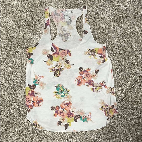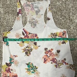 This stylish floral racerback tank top is perfect for casual outings or pair with a sweater for business casual. Featuring a vibrant mix of colors, it adds a touch of elegance to any wardrobe.