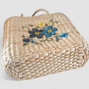 Floral Raffia Straw Shoulder Tote Bag Lined Tropical Beachy Basket Boho Cottage