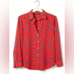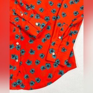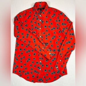 Brighten your wardrobe with this vibrant red floral button-up top. Perfect for any occasion, this stylish piece adds a pop of color to your outfit.