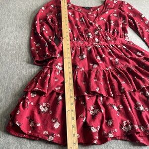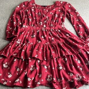 Elegant floral dress in a rich red hue. Perfect for any occasion.