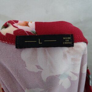 Floral Red Midi Dress With Elastic Waist Women Size L Short Sleeve Pocket FLAW
